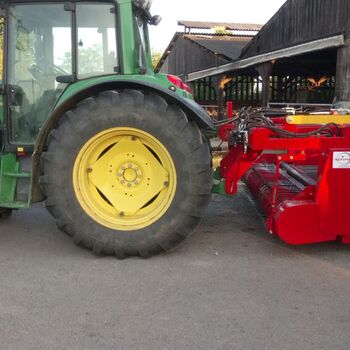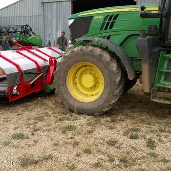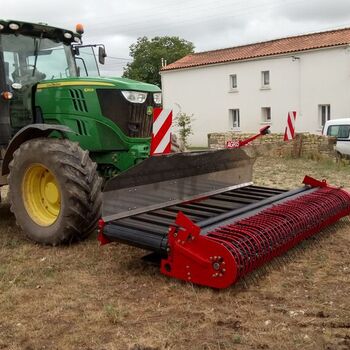 Ce matériel arrière est disponible avec ou sans chariot (homologué pour circulation sur voie routière). L’andaineur à tapis arrière traîné est disponible en deux longueurs de ramassage : 3.30ml et 4.20ml